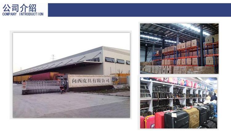 向西箱包商行是拉杆箱、拉杆旅行包、旅行包、儿童书包、电脑包等产品生产加工的公司,拥有完整、 科学的质量管理体系。向西箱包商行的诚信和产品质量获得业界的认可。欢迎各界朋友莅临参观、指导和 业务洽谈。 34*25*49